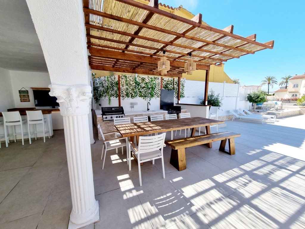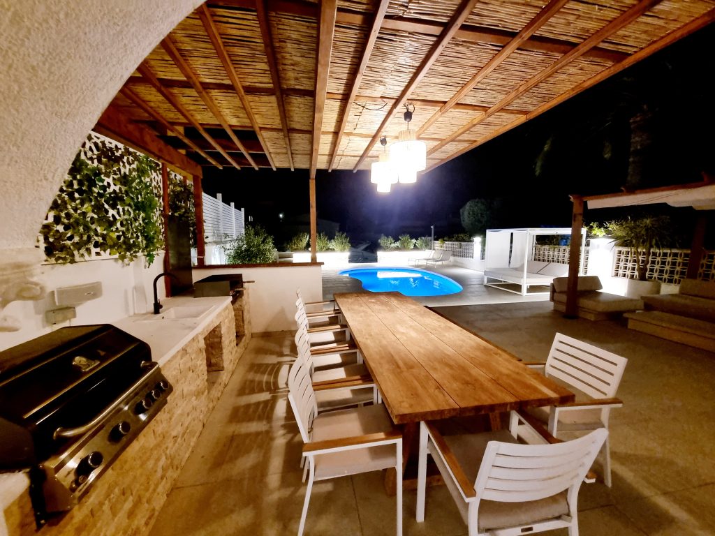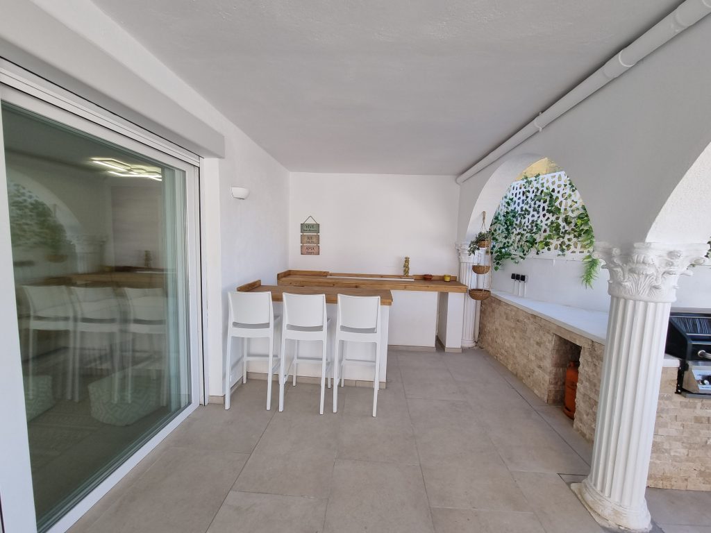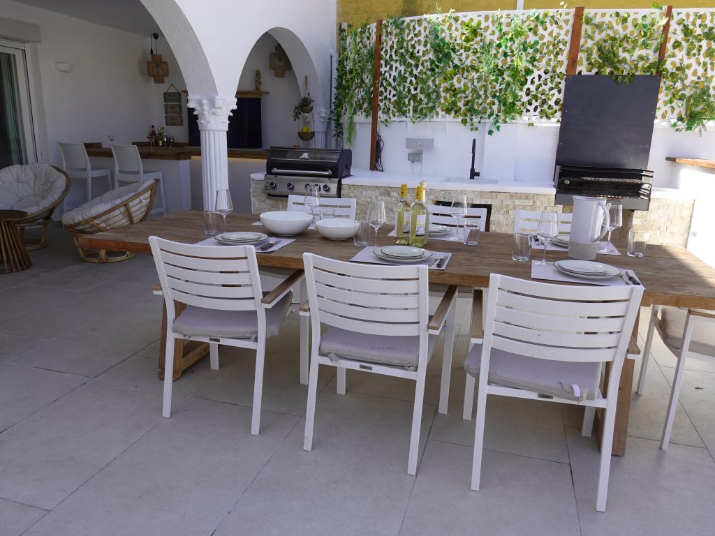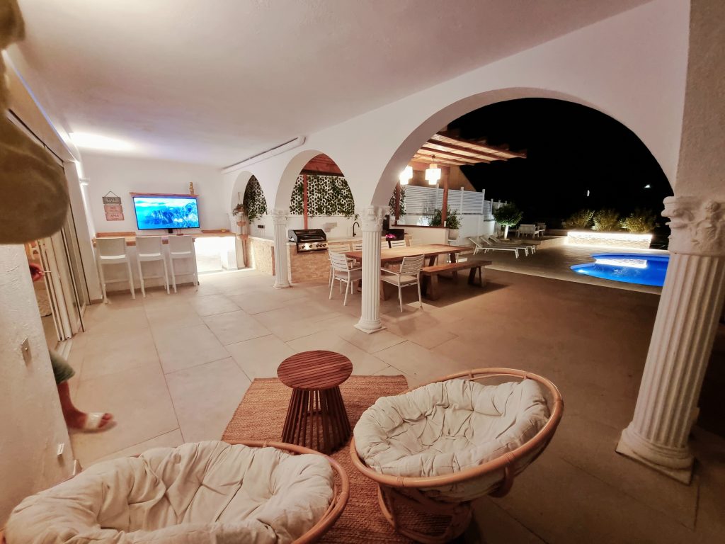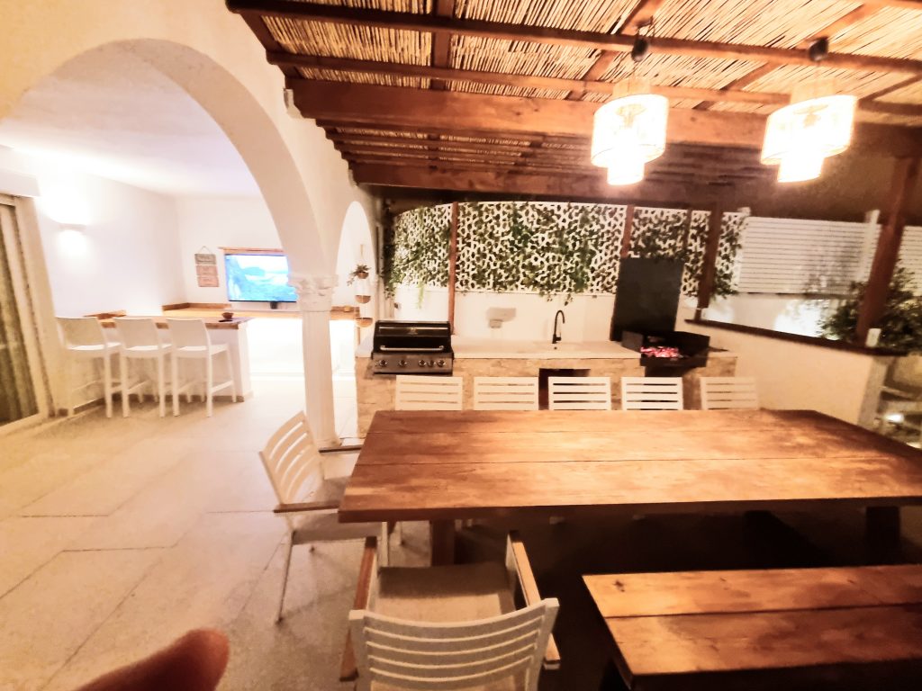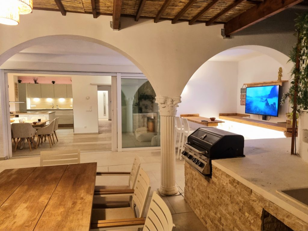 In der Outdoorküche finden Sie einen Gas- und einen Kohlegrill. In der Bar befindet sich ein Fernseher welcher auf Wunsch ausgefahren werden kann.