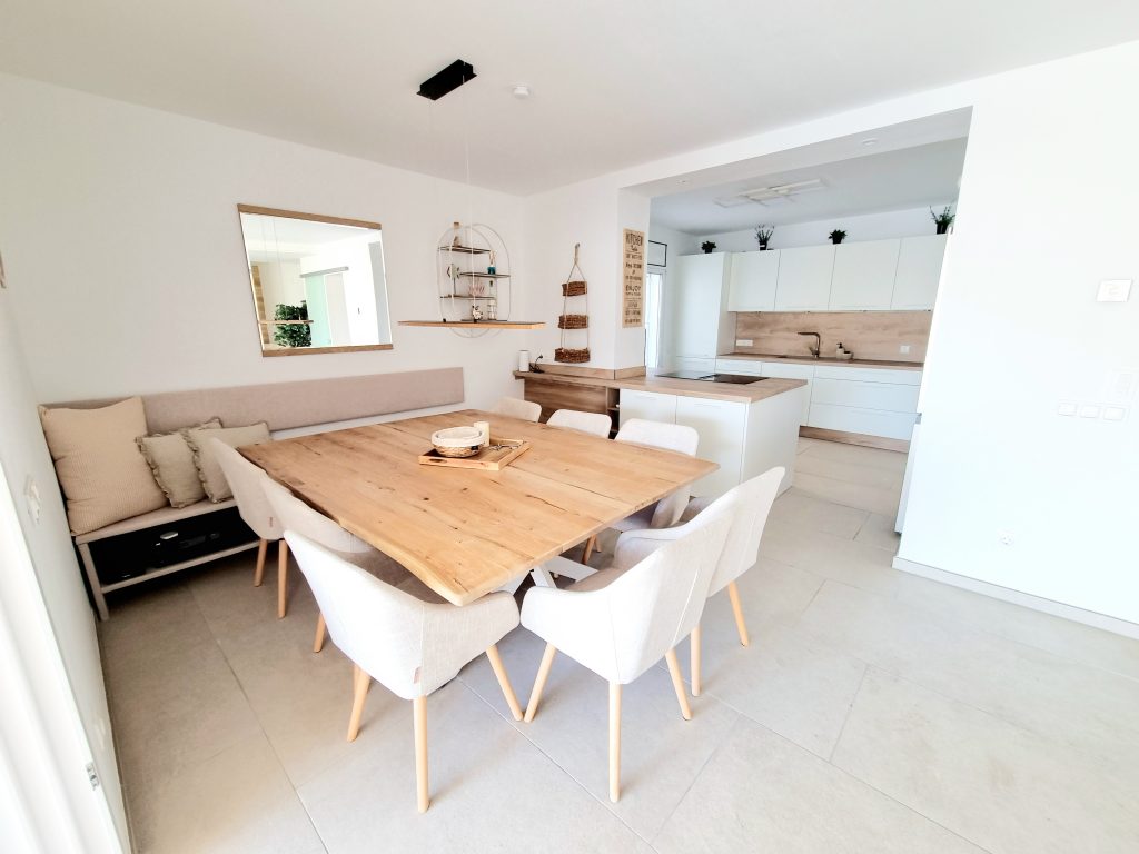 Die Küche ist voll ausgestattet mit Einbaugeräten von Bosch und Neff. Ein French door Kühlschrank und eine Eiswürfel Maschine sorgen für kalte Getränke. Sämtlich Cocktailzubehör ist vorhanden sowie sämtliche Küchenhelfer (Pürierstab, Sandwich Maker, Kaffeemaschine, Raclette gerät, Mixer, etc.